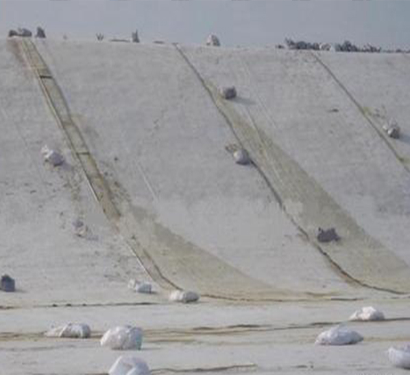 一布一膜有一定的變形量,對底墊層的凹凸缺產(chǎn)生的應(yīng)力傳遞分散較快,應(yīng)變能力較強(qiáng)。用土工織物代替粒材作為土工膜保護(hù)層,以保護(hù)土工膜防滲層不受損壞,降低墊層粒徑的級配要求,并能起排水作用。摩擦系數(shù)大,能防止覆蓋層的滑移,比單純HDPE薄膜,復(fù)合土工膜中的無紡布有較大的摩擦系數(shù),復(fù)合土工膜可使坡比增大減少占地面積。撕裂,頂破,穿刺等力學(xué)強(qiáng)度較高。有一定的保溫作用,減少了土體凍脹對土工膜的破壞,從而減少土體變形。采用埋入式鋪設(shè),有優(yōu)異的抗老化性能,減少了工程的維護(hù)保養(yǎng)。鋪設(shè)施工簡便,減少運(yùn)輸量,降低工程造價,縮短了工期。產(chǎn)品用途