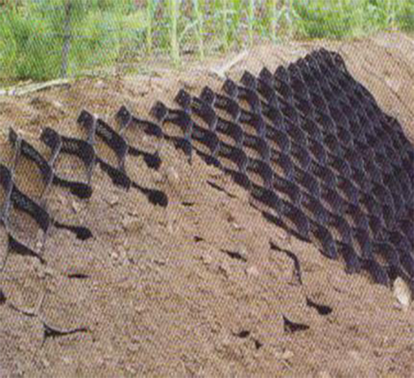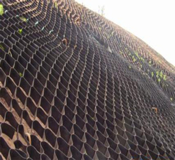 土工格室是由高強(qiáng)度的HDPE或PP共聚料寬帶,經(jīng)過強(qiáng)力焊接或鉚接而形成的一片網(wǎng)狀格室結(jié)構(gòu)。它伸縮自如,運(yùn)輸時可縮疊起來,使用時張開并又充填土石或混凝土料,構(gòu)成具有強(qiáng)大側(cè)向限制和大剛度的結(jié)構(gòu)體。它可用來做為墊層,處理軟弱地基增大地基的承載能力,也可鋪設(shè)在坡面上構(gòu)成坡面防護(hù)結(jié)構(gòu),還可以用來建造支擋結(jié)構(gòu)等。