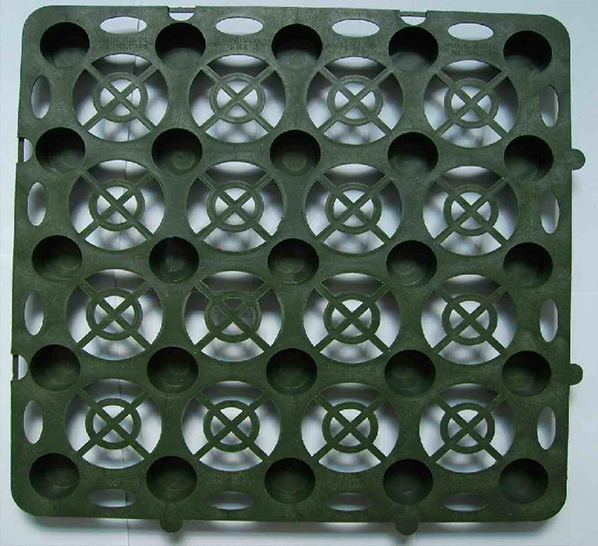 該種板材自身就具有蓄水、排水兩種綜合功能,板材具有空間剛度極高的特點(diǎn),抗壓性明顯優(yōu)于同類產(chǎn)品(可以通過現(xiàn)場(chǎng)試驗(yàn)檢驗(yàn)),能夠承受400Kpa以上的高抗壓負(fù)荷,同時(shí)可以承受在種植頂板回填土過程中機(jī)械碾壓的極端負(fù)荷情況。