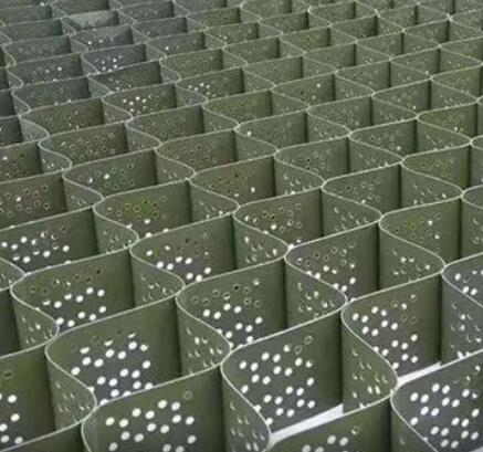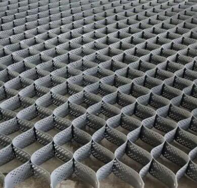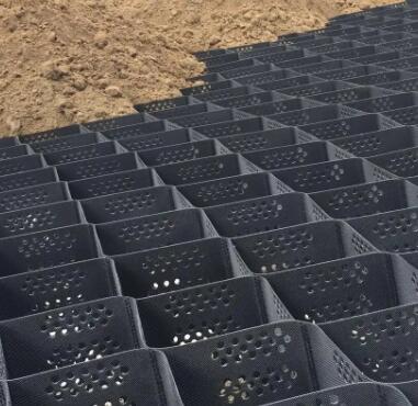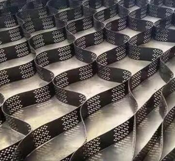 土工格室是由高強(qiáng)度的HDPE或PP共聚料寬帶,經(jīng)過強(qiáng)力焊接或鉚接而形成的一片網(wǎng)狀格室結(jié)構(gòu)。它伸縮自如,運(yùn)輸時可縮疊起來,使用時張開并又充填土石或混凝土料,構(gòu)成具有強(qiáng)大側(cè)向限制和大剛度的結(jié)構(gòu)體。它可用來做為墊層,處理軟弱地基增大地基的承載能力,也可鋪設(shè)在坡面上構(gòu)成坡面防護(hù)結(jié)構(gòu),還可以用來建造支擋結(jié)構(gòu)等。