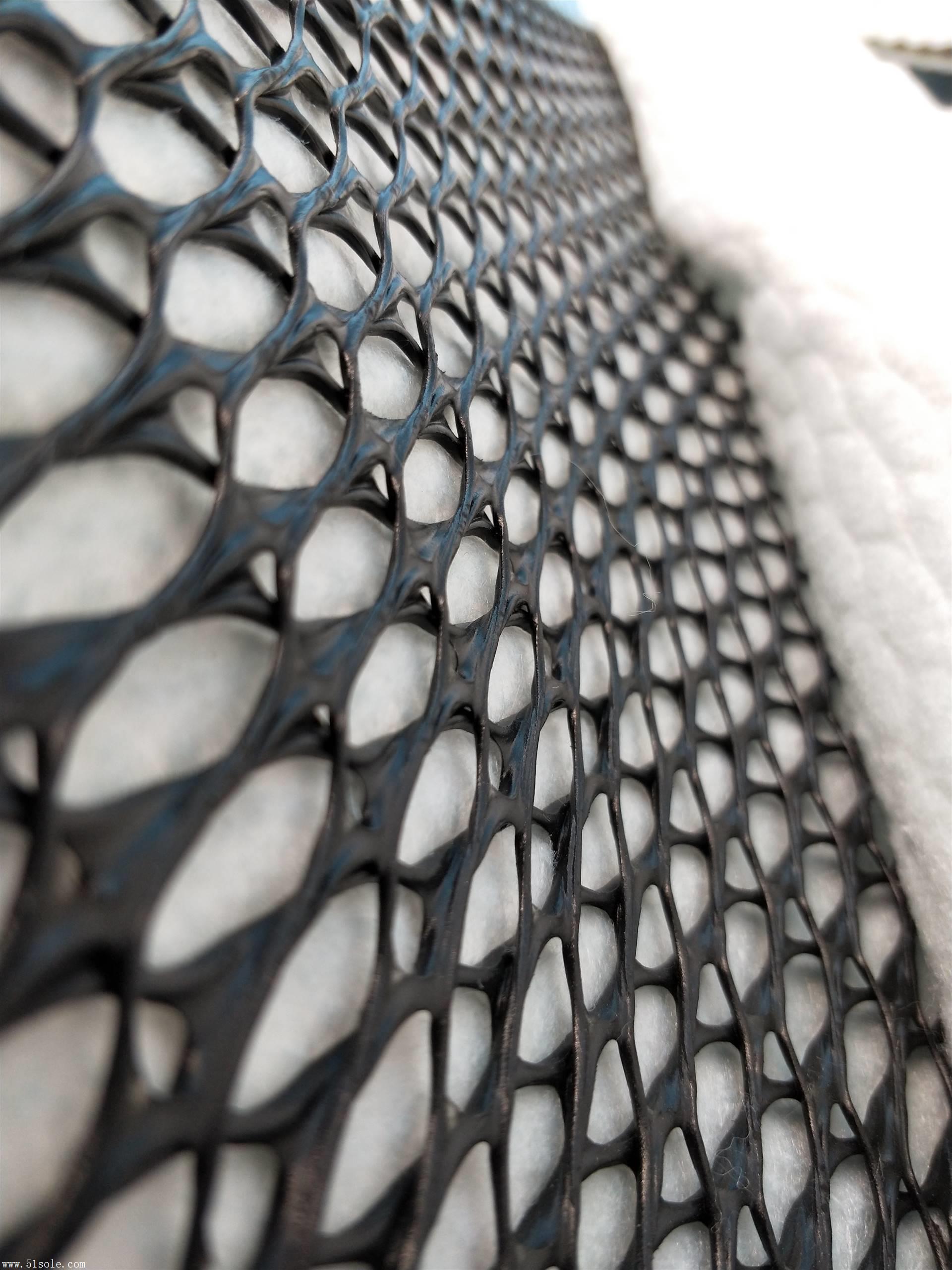 三維復(fù)合排水網(wǎng)(又名三維土工排水板、隧道排放水板、排放水板)由立體結(jié)構(gòu)的塑料網(wǎng)雙面粘接滲水土工布組成,可替代傳統(tǒng)的沙粒和礫石層,主要用于垃圾填埋場、路基和隧道內(nèi)壁的排水。復(fù)合排水網(wǎng)是一種新型的排水土工材料。以高密度聚乙烯(HDPE)為原料,經(jīng)特殊的擠出成型工藝加工而成,具有三層特殊結(jié)構(gòu)。中間筋條剛性大,縱向排列,形成排水通道,上下交叉排列的筋條形成支撐防止土工布嵌入排水通道,即使在很高的荷載下也能保持很高的排水性能。雙面粘接滲水土工布復(fù)合使用,具有“反濾--排水--透氣--保護(hù)”綜合性能。隧道排放水板復(fù)合排水網(wǎng)芯的三維結(jié)構(gòu)可以在整個使用過程中承受高壓縮載荷,并保持相當(dāng)?shù)暮穸?,從而提供良好的?dǎo)水率。